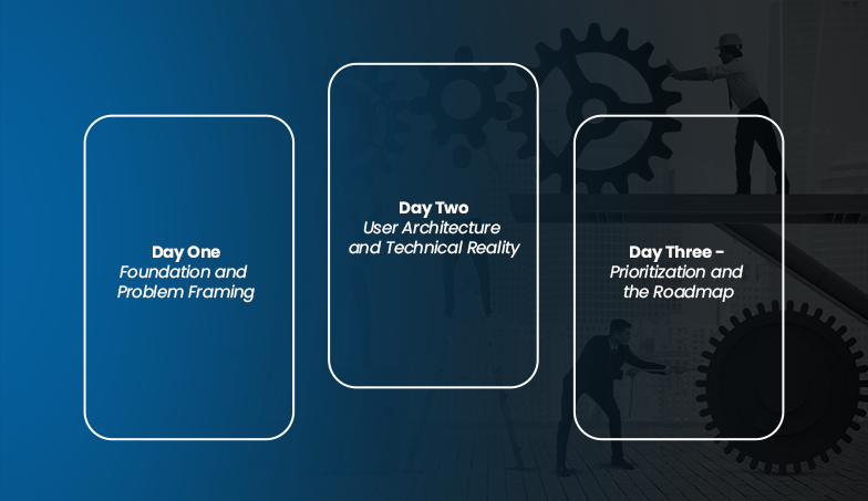Day one is about excavation. Most teams arrive with a product design idea or a solution they’re excited to build. The first job is to set that solution aside temporarily and go deeper into the problem it’s meant to solve. Who experiences this problem? How frequently? What are they doing today as a workaround? What does good look like to them?